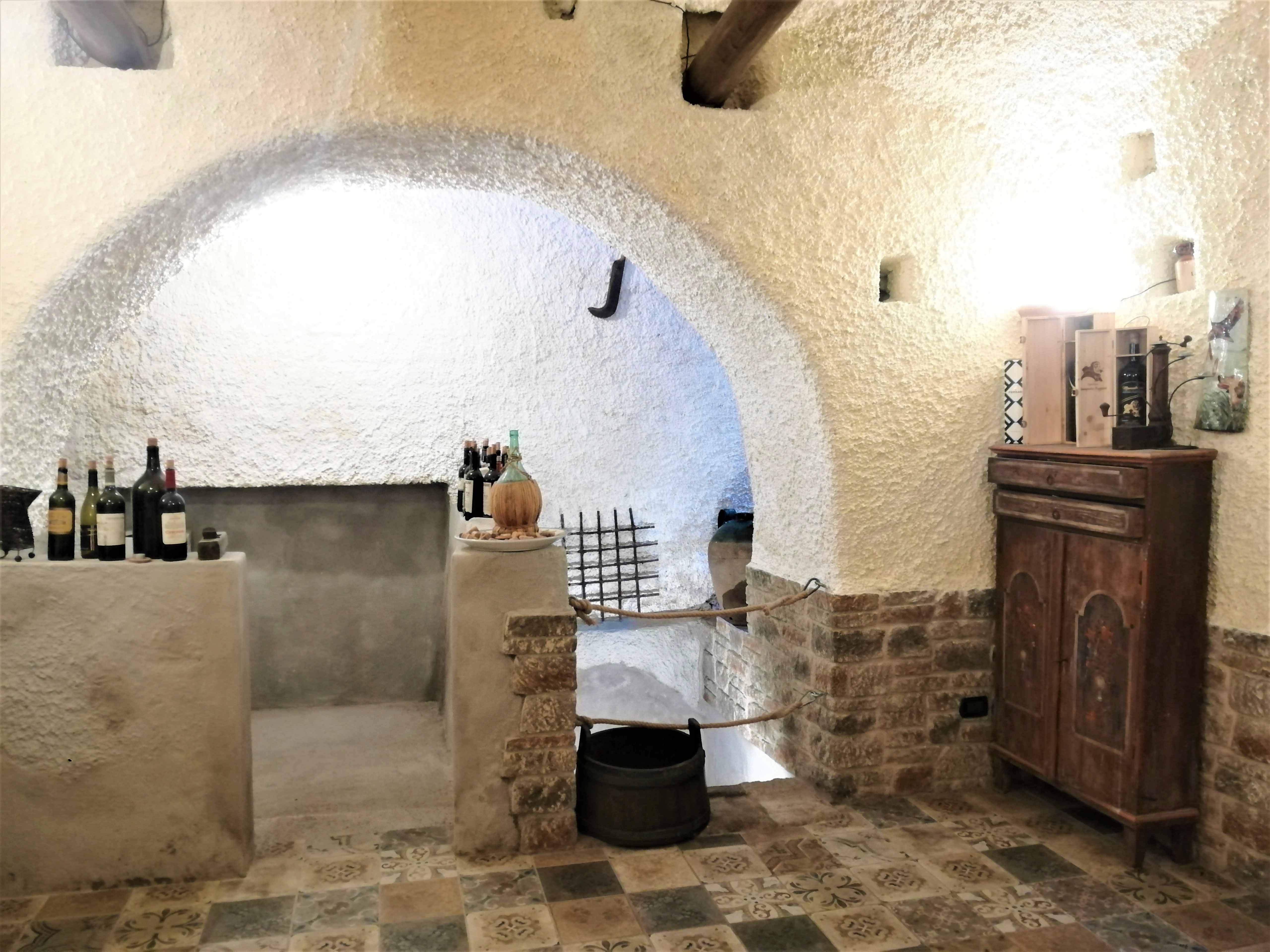 Le prove? La sala interna è ricavata dalla cantina – guarda un po’! – con il palmento, tra gli angoli romantici e i segni di piccone lasciati da chi scavò tutto a forza di braccia. Il caminetto e gli arredi datati non stonano con la sobrietà necessaria.